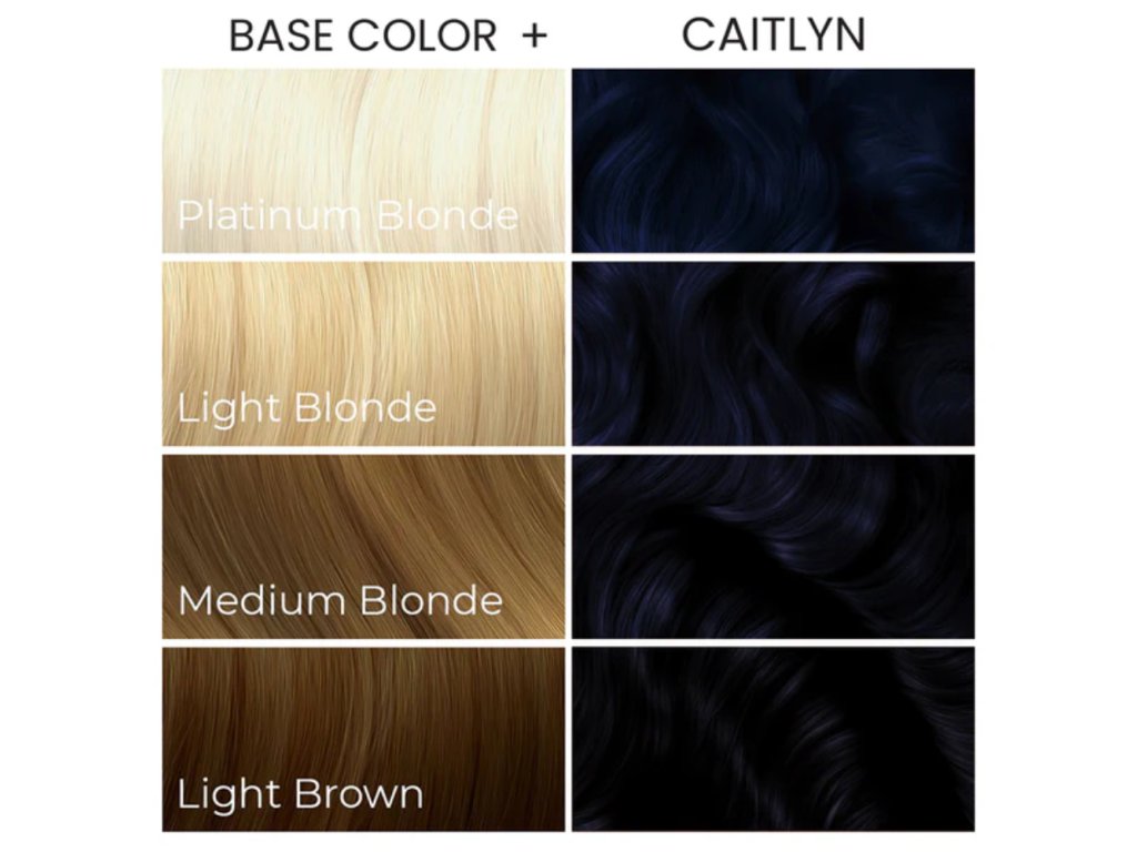 Discover the magic of this dark blue color that stands out with every movement and gives your hair style and confidence. Caitlyn is a shade inspired by strength, elegance, and nobility — ideal for those who want to shine with courage and refined taste. For the most striking dark blue color, apply to pre-lightened blonde hair. On darker hair, Caitlyn creates a soft, smoky blue shade.