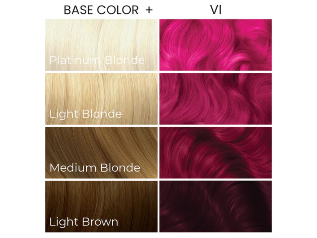 For the most vibrant bright pink colour, apply to pre-lightened blonde hair. On darker hair, VI adds a rich pink-purple hue.