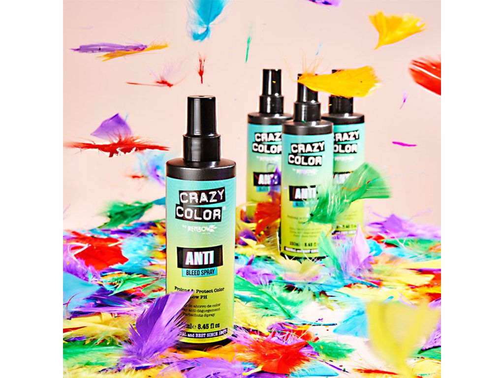 Crazy Color hair dye Anti-Bleed Spray helps seal your semi-permanent Crazy Color and prevent bleeding. The ultra-low PH formula works in just 60 seconds to stop the coloring process by shutting down the cuticle and actively extending the life of all colored hair types.