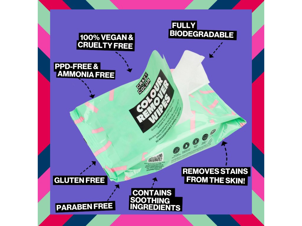 These Crazy Color color removal wipes will quickly remove unwanted hair color from your skin! Suitable for all skin types.
