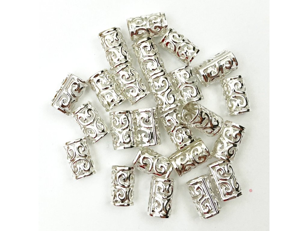 Beads with adjustable diameter silver hole 10mm length 15mm 24pcs