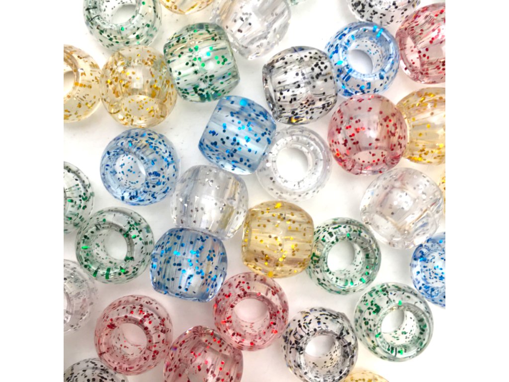 Plastic beads for dreads, pseudo dreads, braids or decorating hairstyles.