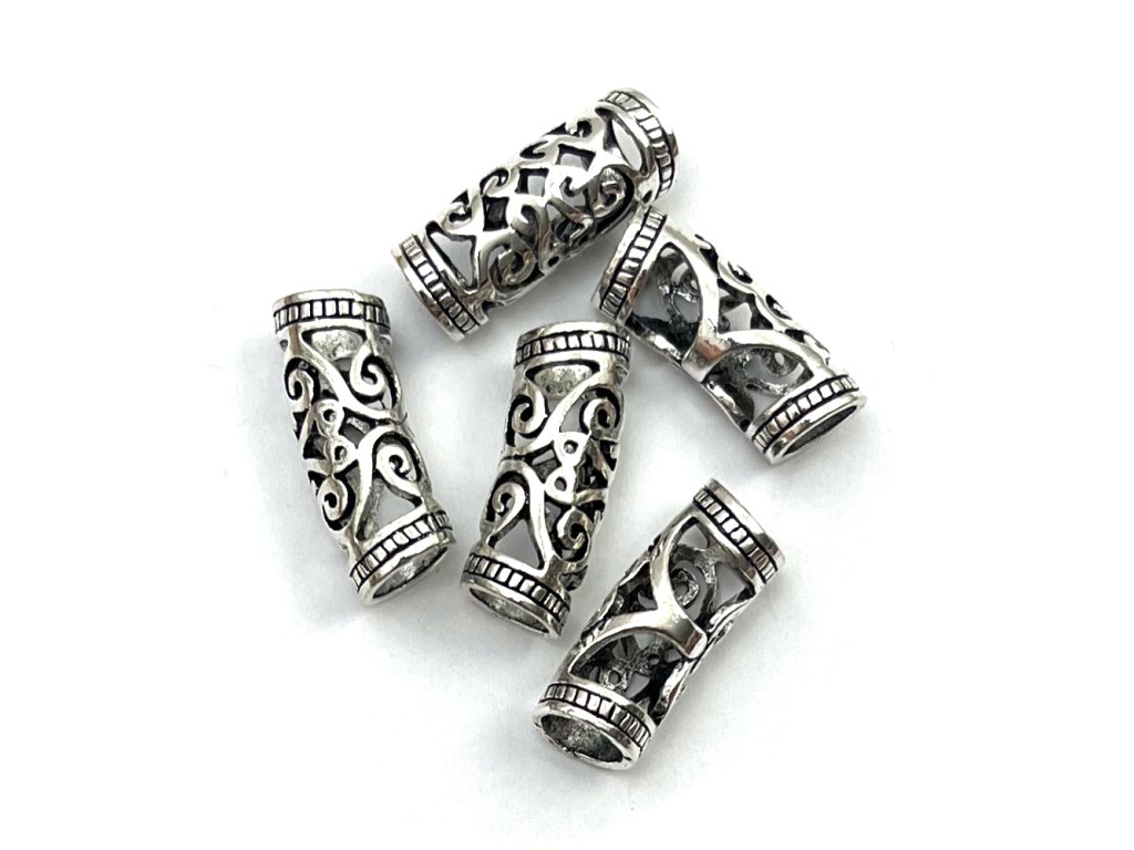 Beads for dreadlocks or braids. Hole size 0,7cm x 2,6cm length. Package contains 1 piece.