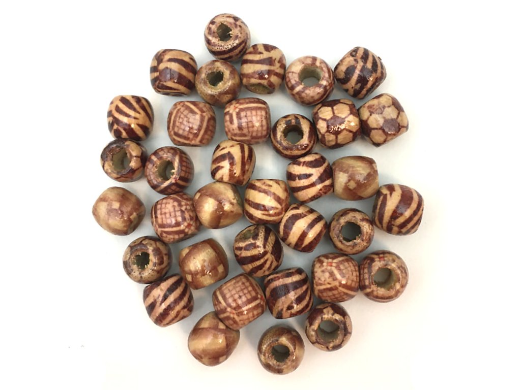 Wooden beads for dreads, pseudo dreads, braids or decorating hairstyles.