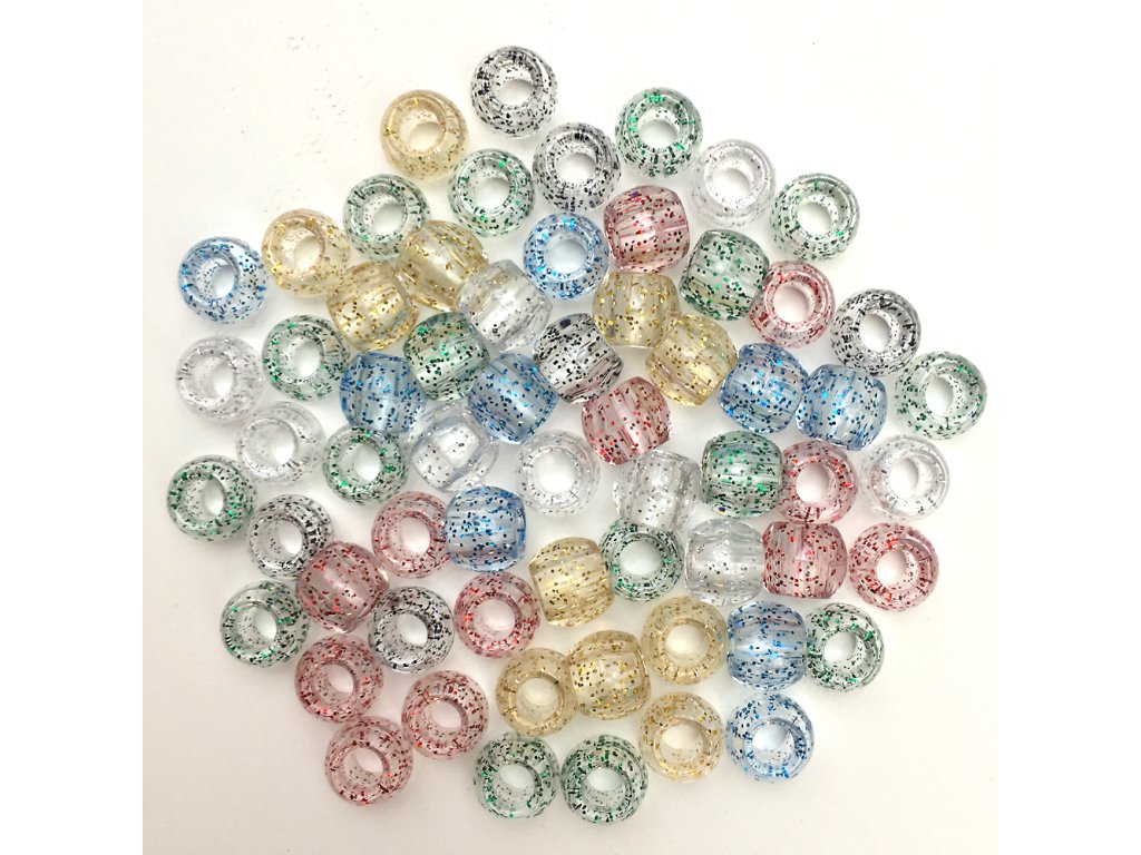Plastic beads for dreads, pseudo dreads, braids or decorating hairstyles.