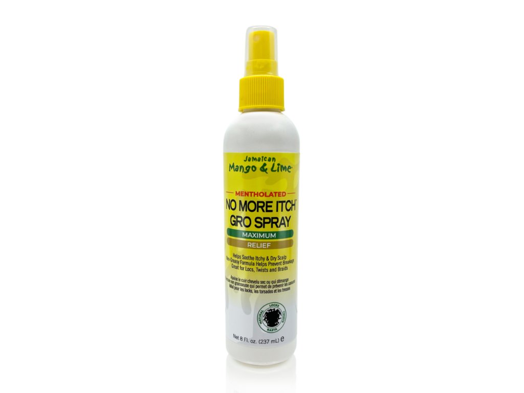 Jamaican Mango&Lime No more Itch Gro Spray soothes irritated, itchy scalp with mango and lime. Suitable for irritation after braiding rasta braids, dreadlocks or plaited braids. Hydrates dry scalp, nourishes hair and reduces breakage. This soothing serum can be used on all hair types. Applying the product will not disturb the hairstyle and will prolong its life. With menthol for extra relief of irritated dry skin.