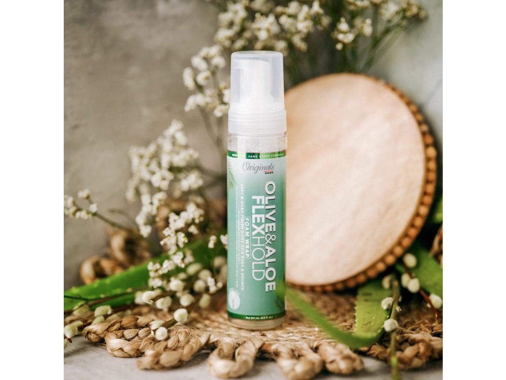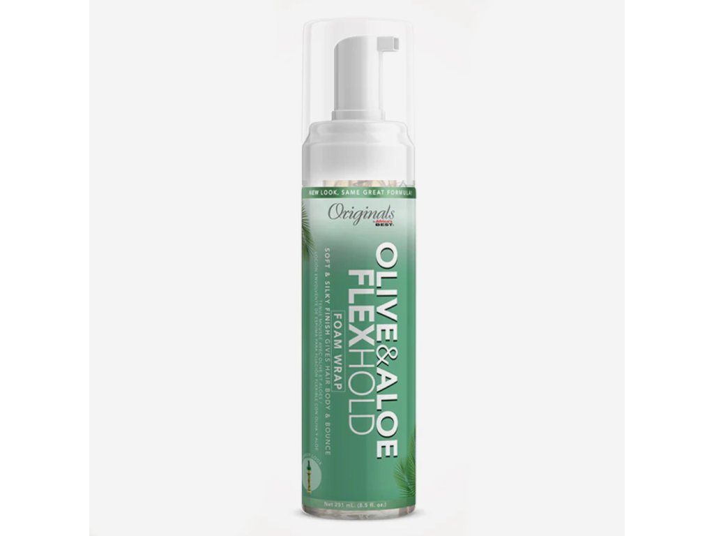 The formula of this mousse is enriched with 100% pure olive oil for ultimate hydration and a healthy dose of Aloe Vera to help repair strands and seal in moisture in the hair.