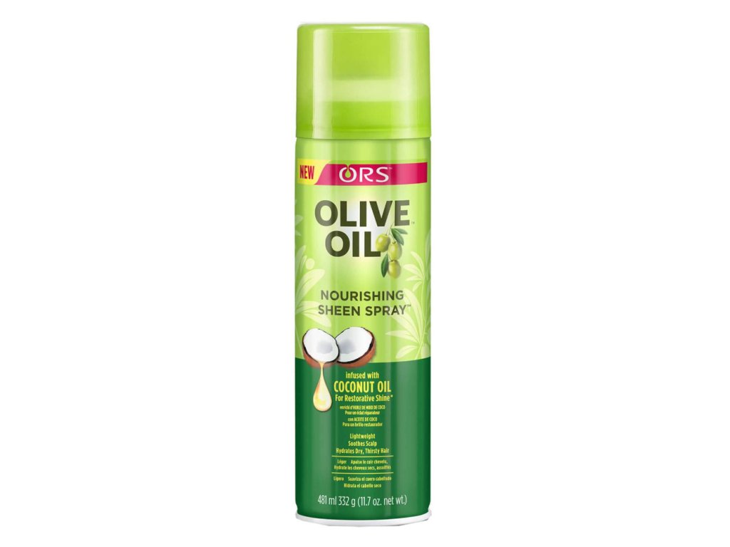 ORS Olive Oil Nourishing Sheen Spray is a non-greasy sheen enhancer created to restore the hair natural moisture balance. A blend of Vitamin E, Olive Oil, and herbal extracts provide new life to all hair textures. This product is free of fluorocarbons and drying alcohols. It won't fog or bead like other sheen sprays, and it will not weigh hair down.