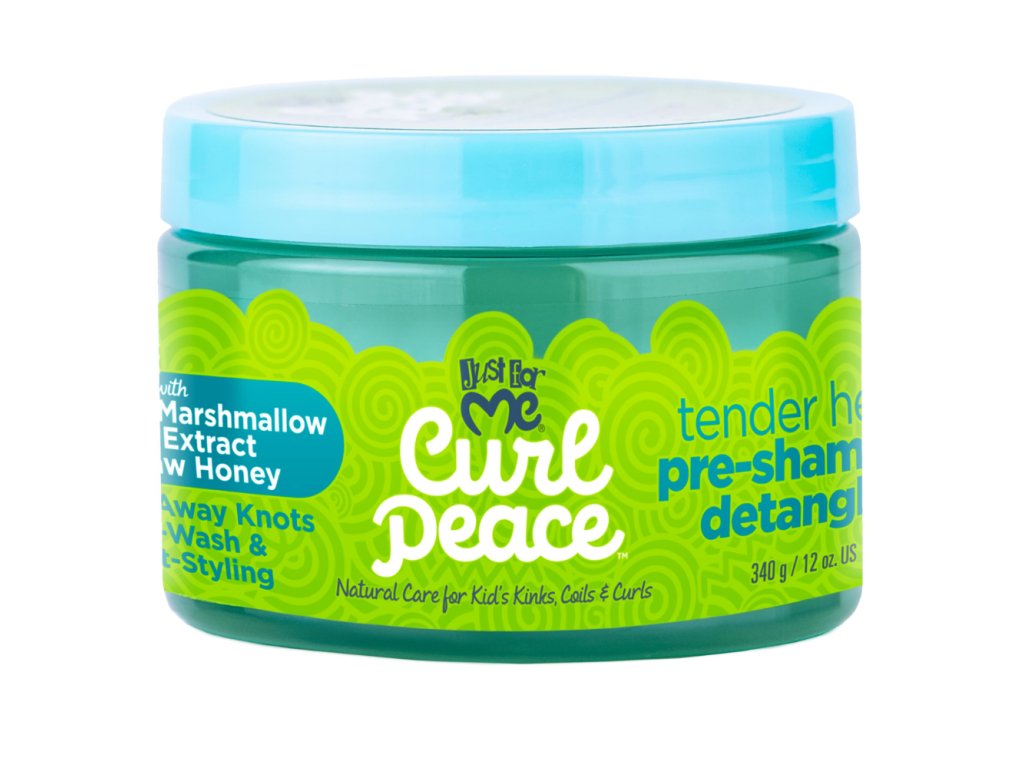 Just For Me Curl Peace Tender Head Pre-Shampoo Detangler is a pre-shampoo treatment specially formulated for sensitive baby heads that suffer from pulling hair when detangling. With a combination of aloe vera, hibiscus root extract and natural honey, it helps to gently untangle knots and tangles before the actual wash. This product is also ideal after detangling braided hairstyles, when hair needs extra gentle care.