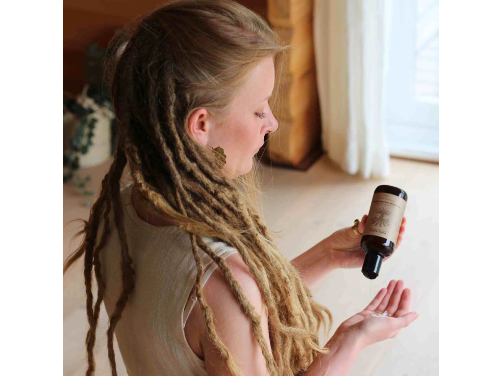 Organic oils of geranium, rosemary, lavender and eucalyptus: They add a wonderful fragrance, stimulate the scalp and keep dreadlocks naturally healthy, strong and clean.