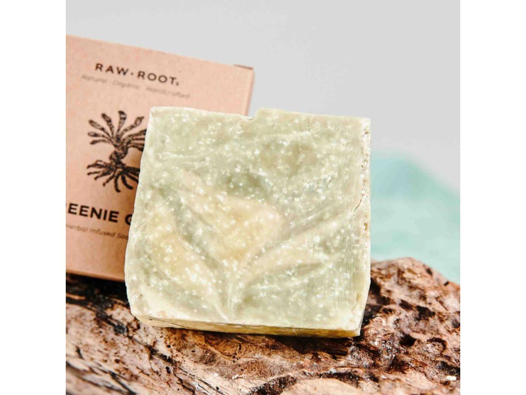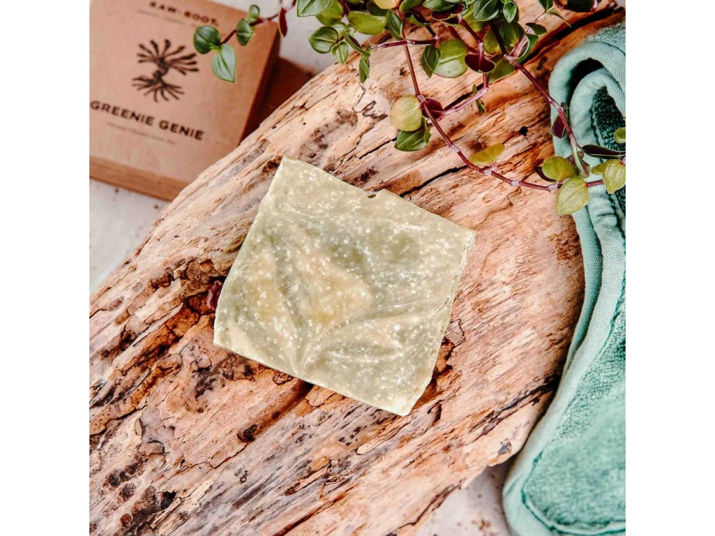 RAW ROOTs Greenie Genie Soap is ideal for washing new and already formed dreadlocks. This shampoo soap block is handmade with plant and natural oils to care for normal and oily hair and scalp. It can also be used as a hand or body soap.