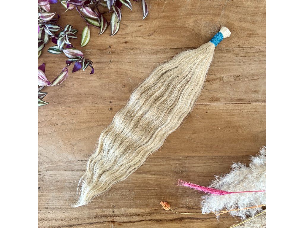 Real hair CURLY DARK BLOND 55 cm in braid 127 gr