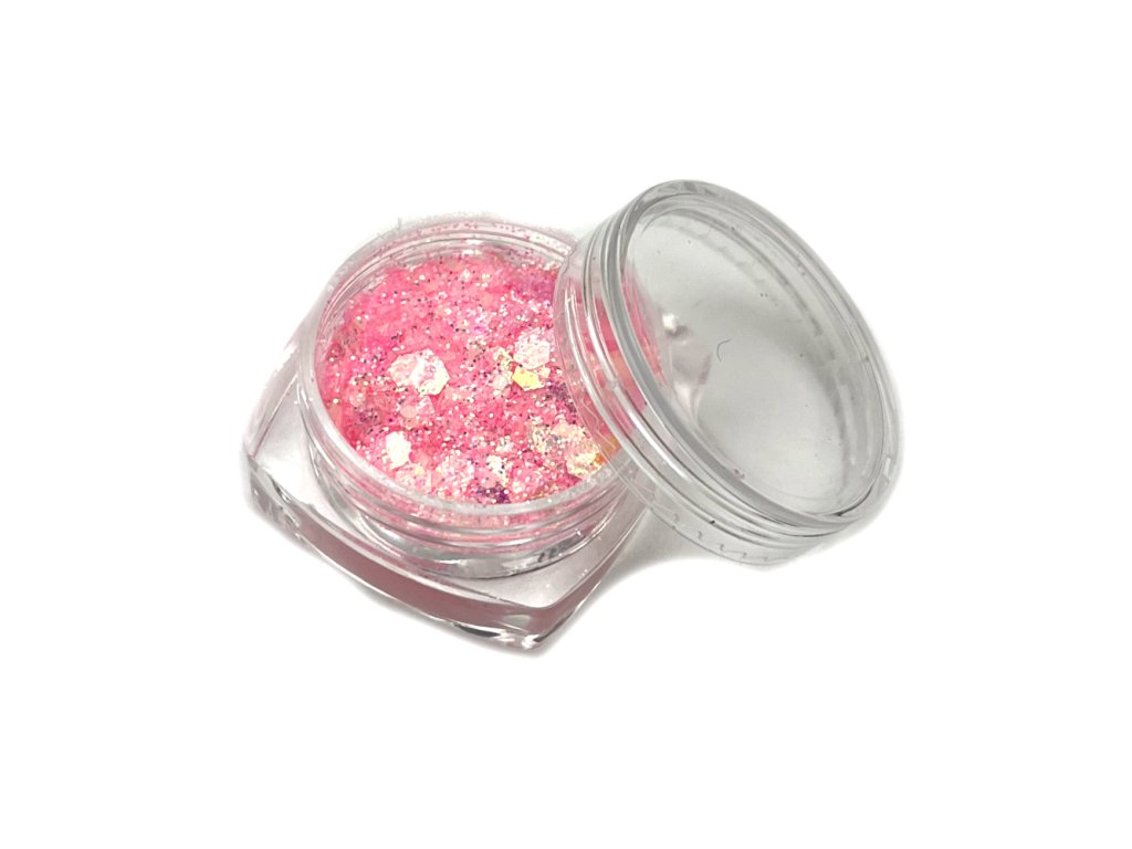 Glitter for face and body to create a unique glitter effect. Mix of sizes. Glow in the dark. Can be applied with face cream products, eyelash glue or hair gels.