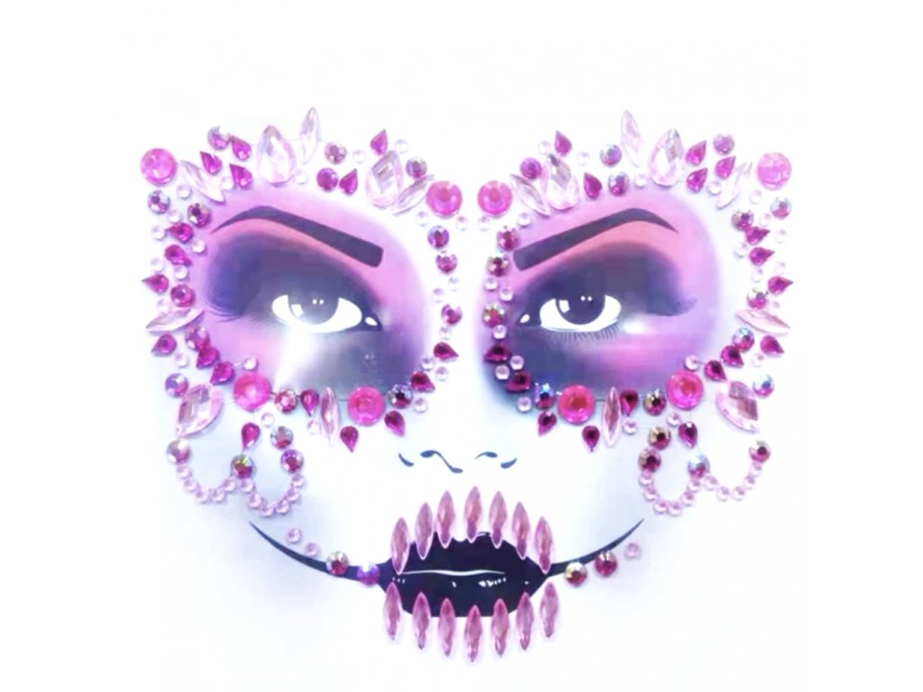 Stick on rhinestones for the face and body are the perfect accessory for a party or festival.