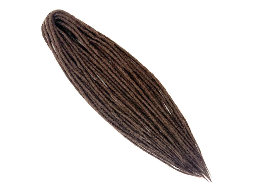 The package contains 10 pieces of dreadlocks folded in half (20 ends). The length of the dreadlocks is approximately 120cm from one end to the other and their diameter is approximately 0,6cm.