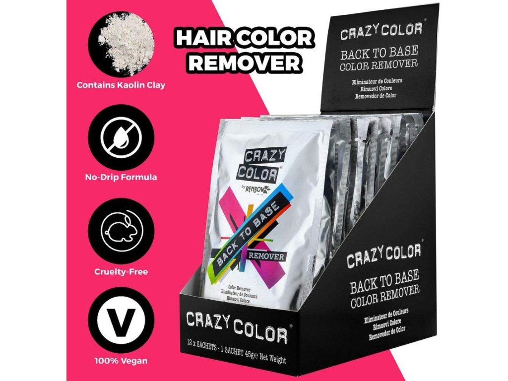 If you are tired of the current color and want to return to your natural shade, Crazy Color Back To Base Color Remover will help you. Easily remove color from hair in 30 minutes or less. This Crazy color remover comes in a small 45g bag.