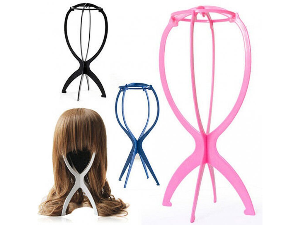 Standing holder for wigs and extensions. It is made of plastic and it is possible to disassemble.