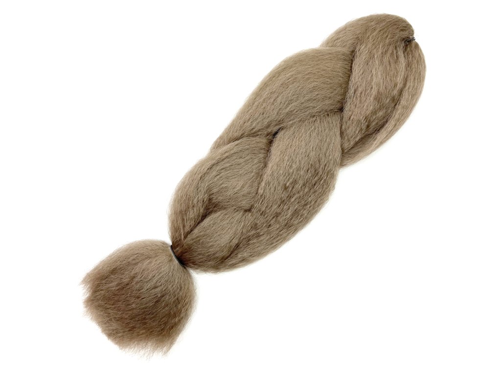 The fiber is slightly creped, so it does not slip during braiding and gives the braids the required volume. The fiber length is 120cm and the weight of one package is approximately 85gr. With one package you can create approximately 25pcs of braids or 10pcs of double-ended pseudo dreadlocks 0,5cm thick. Approximately 150 braids or 60-70 pieces of double-ended pseudo dreads per head are used.