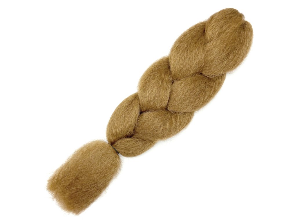 The fiber is slightly creped, so it does not slip during braiding and gives the braids the required volume. The fiber length is 120cm and the weight of one package is approximately 85gr. With one package you can create approximately 25pcs of braids or 10pcs of double-ended pseudo dreadlocks 0,5cm thick. Approximately 150 braids or 60-70 pieces of double-ended pseudo dreads per head are used.