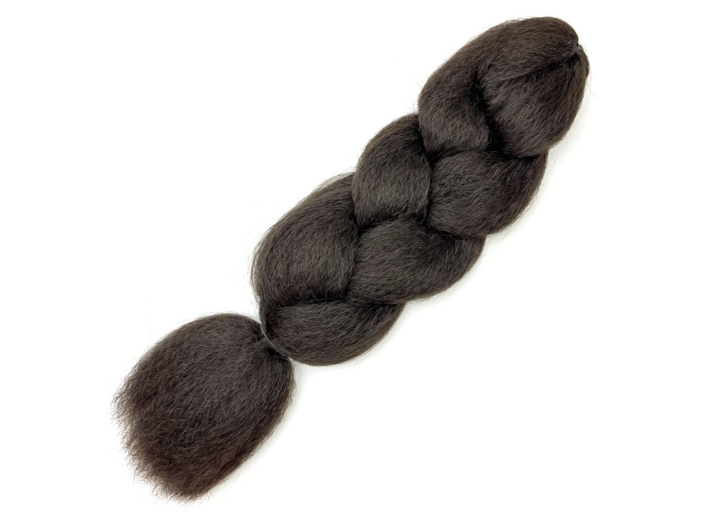 The fiber is slightly creped, so it does not slip during braiding and gives the braids the required volume. The fiber length is 120cm and the weight of one package is approximately 85gr. With one package you can create approximately 25pcs of braids or 10pcs of double-ended pseudo dreadlocks 0,5cm thick. Approximately 150 braids or 60-70 pieces of double-ended pseudo dreads per head are used.