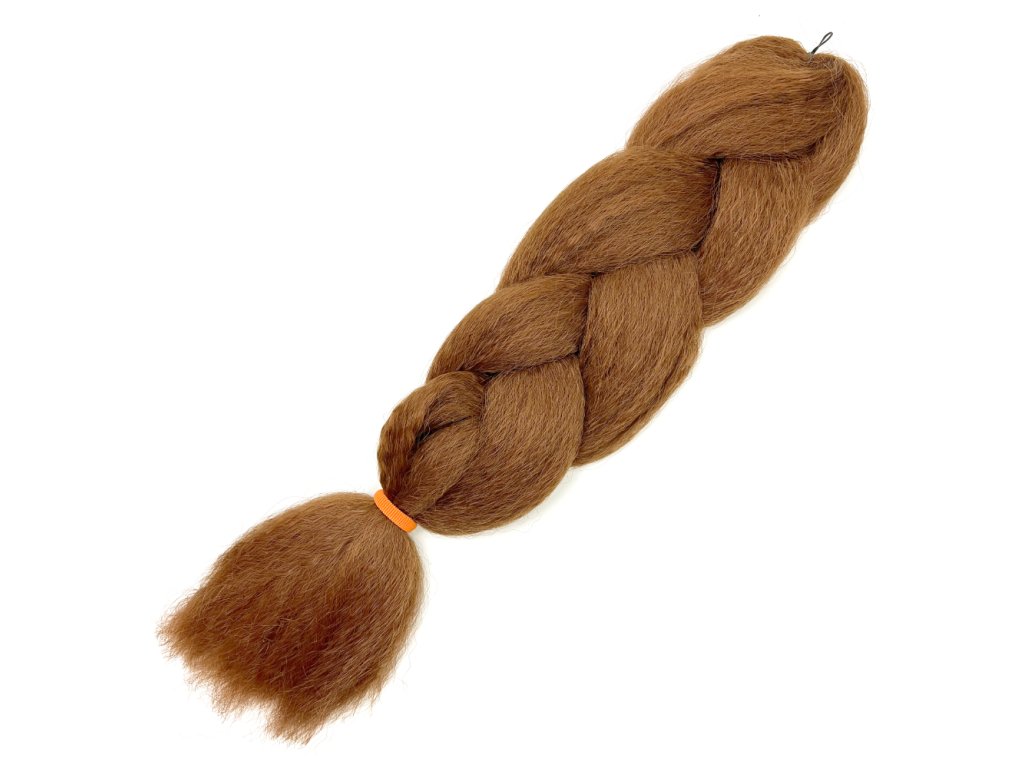 The fiber is slightly creped, so it does not slip during braiding and gives the braids the required volume. The fiber length is 120cm and the weight of one package is approximately 85gr. With one package you can create approximately 25pcs of braids or 10pcs of double-ended pseudo dreadlocks 0,5cm thick. Approximately 150 braids or 60-70 pieces of double-ended pseudo dreads per head are used.