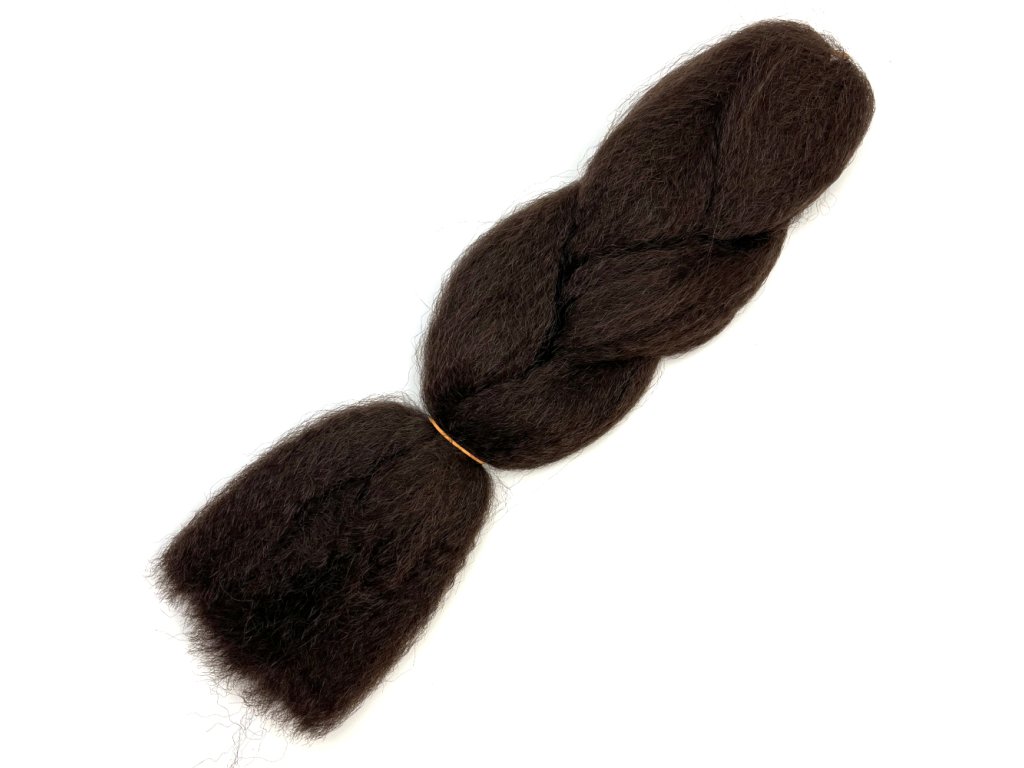 The fiber is slightly creped, so it does not slip during braiding and gives the braids the required volume. The fiber length is 120cm and the weight of one package is approximately 85gr. With one package you can create approximately 25pcs of braids or 10pcs of double-ended pseudo dreadlocks 0,5cm thick. Approximately 150 braids or 60-70 pieces of double-ended pseudo dreads per head are used.