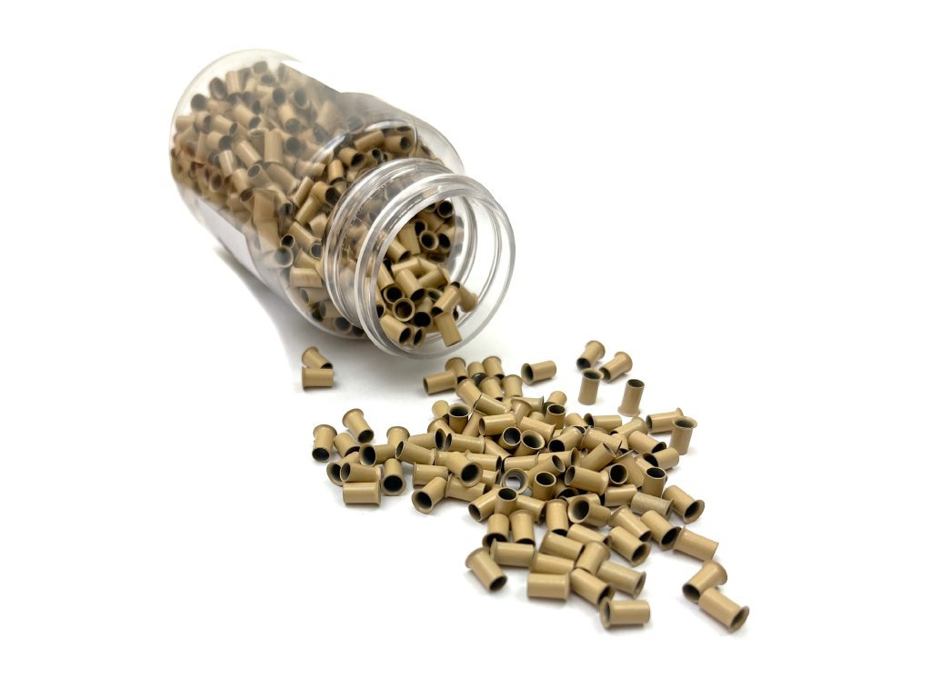 We offer special copper Micro Rings with flared edge and an outer diameter of 3.4 mm. The inner diameter is 3mm and the length of the rings is 6mm. Copper rings have a special shape that eliminates the formation of sharp edges after snapping and creates an almost invisible secure connection. Mirco rings are used for hair extensions using the Ring method. The color of the copper rings holds very well and does not peel off like with classic aluminum rings.