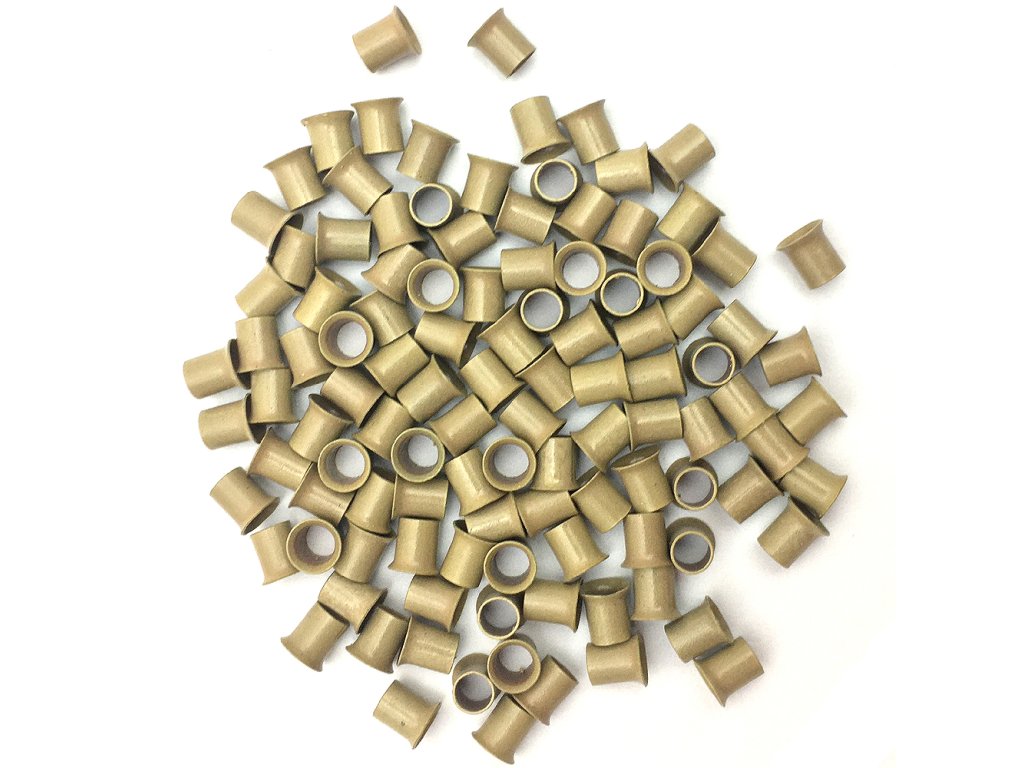 We offer copper extra short Micro rings with outer diameter 4.0mm, inner diameter 2.7mm. The length of the rings is 4.0mm. The copper rings are extra thin for an almost invisible connection. Mirco rings are used for hair extensions using the Ring method. The color of the copper rings holds very well and does not peel off like with classic aluminum rings.