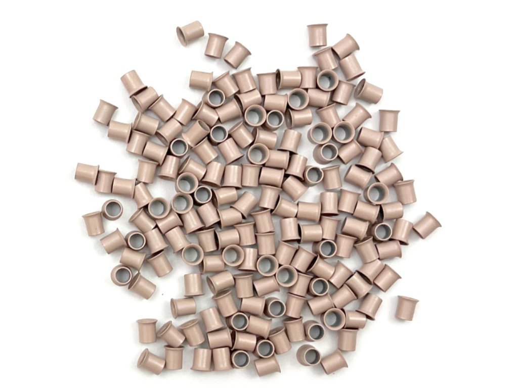 We offer copper extra short Micro rings with outer diameter 4.0mm, inner diameter 2.7mm. The length of the rings is 4.0mm. The copper rings are extra thin for an almost invisible connection. Mirco rings are used for hair extensions using the Ring method. The color of the copper rings holds very well and does not peel off like with classic aluminum rings.