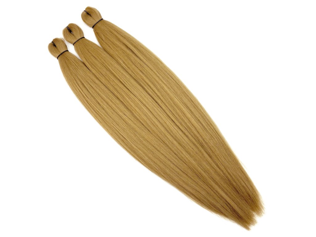 The fiber is slightly creped, so it does not slip during braiding and gives the braids the required volume. It can be straightened to a smooth structure by heat. The fiber length is 150 cm, 75cm after folding and the weight of one package is approximately 180 g. You can create approximately 75 pieces of braids from one package. Approximately 150 braids per head are used.
