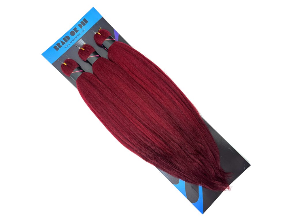 100% Ultra Braid Kanekalon Pre-stretched is a new type of material specially designed for rasta braids, box braids and twists. EZ 100% Jumbo Braid Kanekalon can also be used to create extravagant hairstyles and hairpieces. Also known as Pre-cut, Pre-feathered, Pre-stretched, Pre-layered.