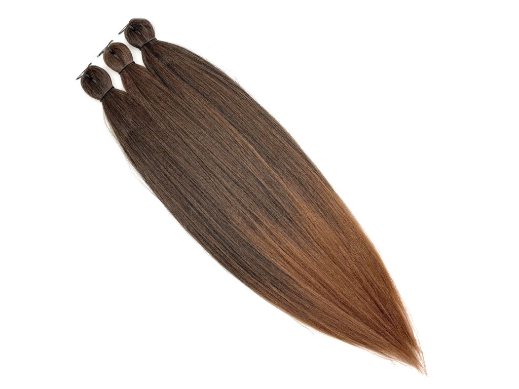 The fiber is slightly creped, so it does not slip during braiding and gives the braids the required volume. It can be straightened to a smooth structure by heat. The fiber length is 150 cm, 75cm after folding and the weight of one package is approximately 180 g. You can create approximately 75 pieces of braids from one package. Approximately 150 braids per head are used.