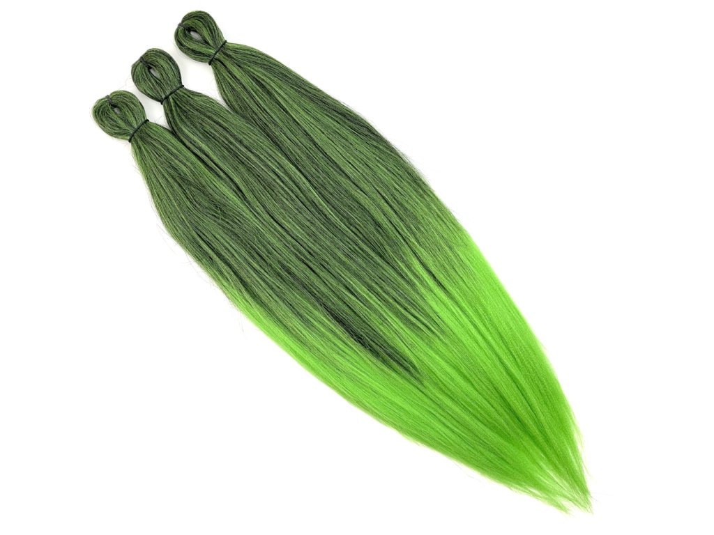 The fiber is slightly creped, so it does not slip during braiding and gives the braids the required volume. It can be straightened to a smooth structure by heat. The fiber length is 150 cm, 75cm after folding and the weight of one package is approximately 180 g. You can create approximately 75 pieces of braids from one package. Approximately 150 braids per head are used.