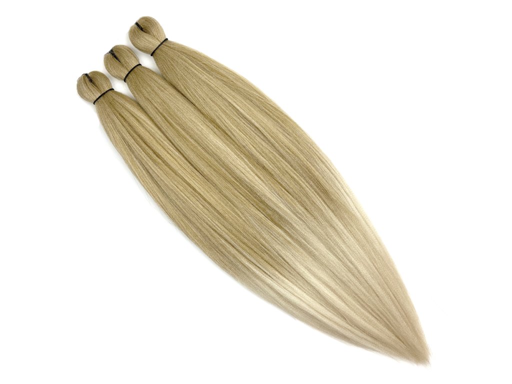 The fiber is slightly creped, so it does not slip during braiding and gives the braids the required volume. It can be straightened to a smooth structure by heat. The fiber length is 150 cm, 75cm after folding and the weight of one package is approximately 180 g. You can create approximately 75 pieces of braids from one package. Approximately 150 braids per head are used.