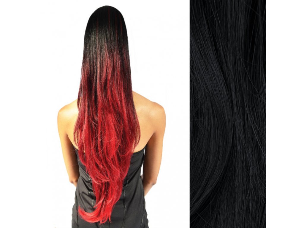 Clip-in ponytail is made out of kanekalon and it is 60cm long. This hairpiece gets fixed with a band. The fibre is flame-retardant and you can style it with heat up to 150C.