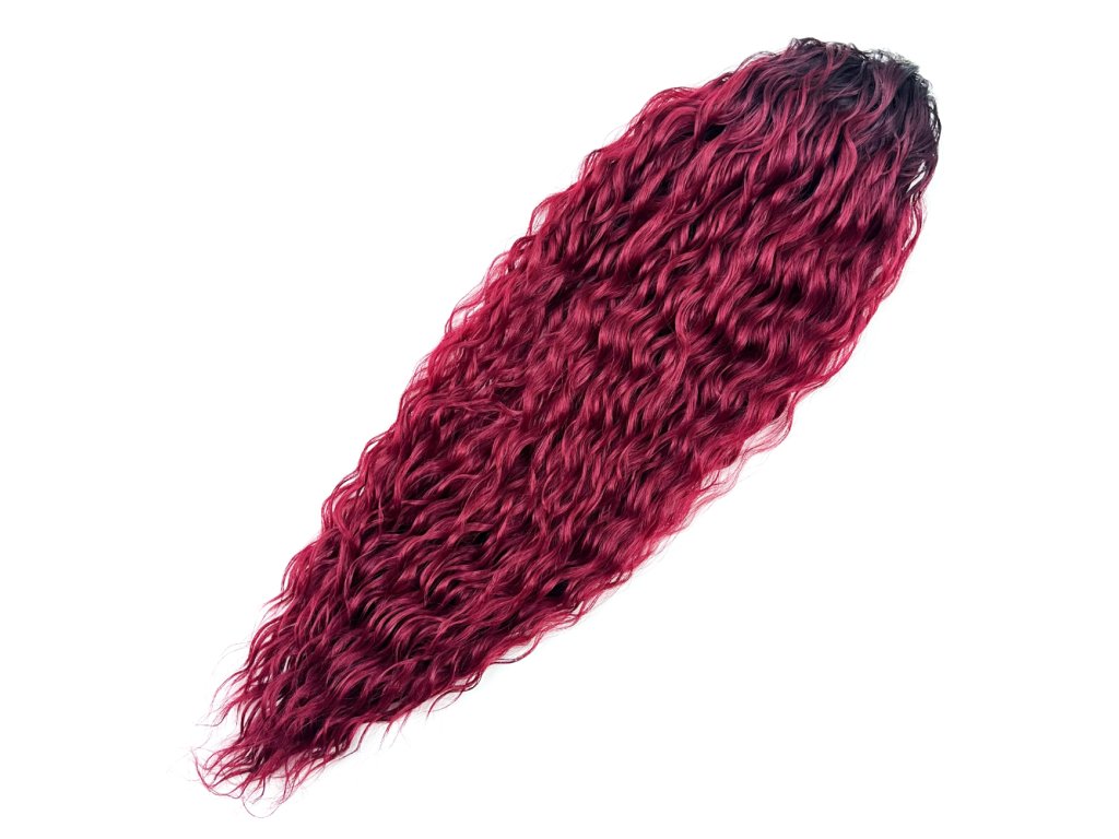 Wavy ponytail on a drawstring 60cm long. Approximate weight of ponytail is 200gr. Easy to put on by tightening the elastic band. The fibre can be heat treated up to 180-200C.