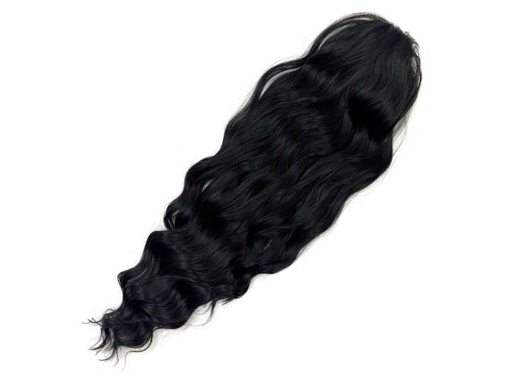 Wavy ponytail on a drawstring 60cm long. Approximate weight of ponytail is 160gr. Easy to put on by tightening the elastic band. The fiber can be heat treated up to 180-200C.