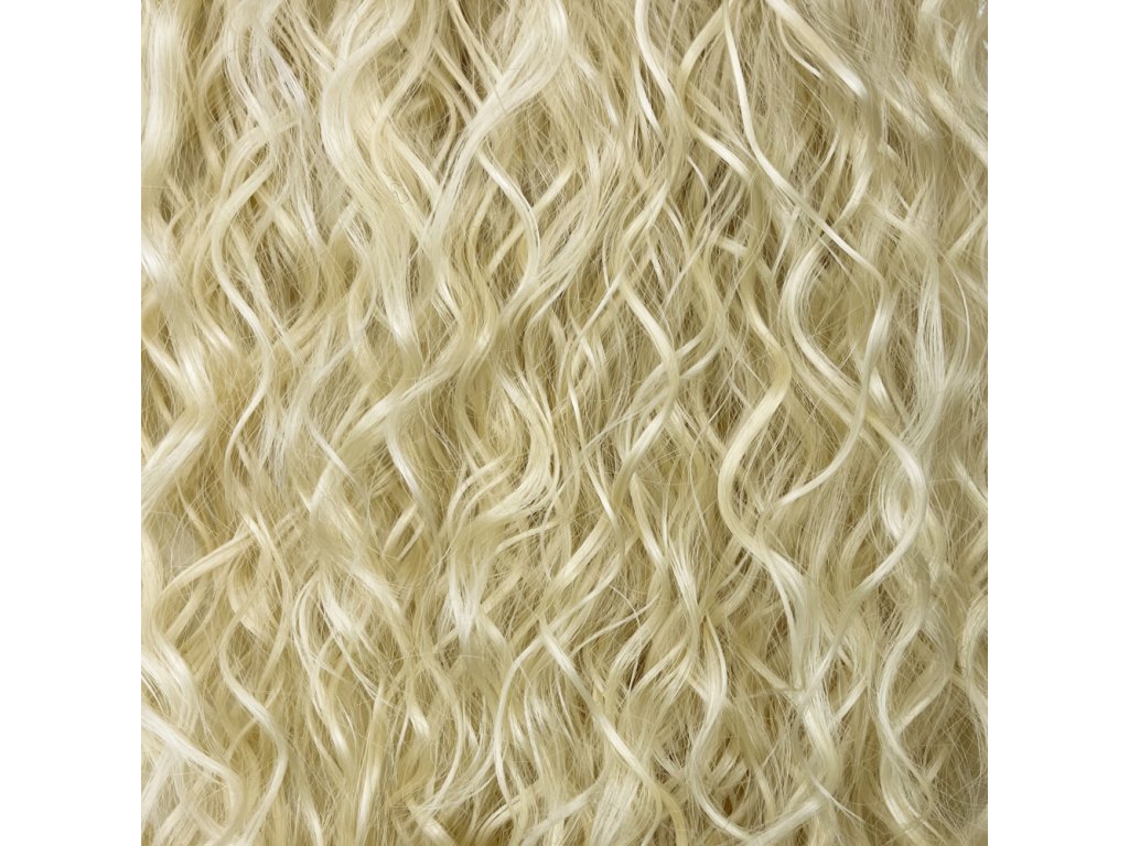 Wavy ponytail on a drawstring 60cm long. Approximate weight of ponytail is 180gr. Easy to put on with a drawstring. The fibre can be heat treated up to a temperature of 200C.