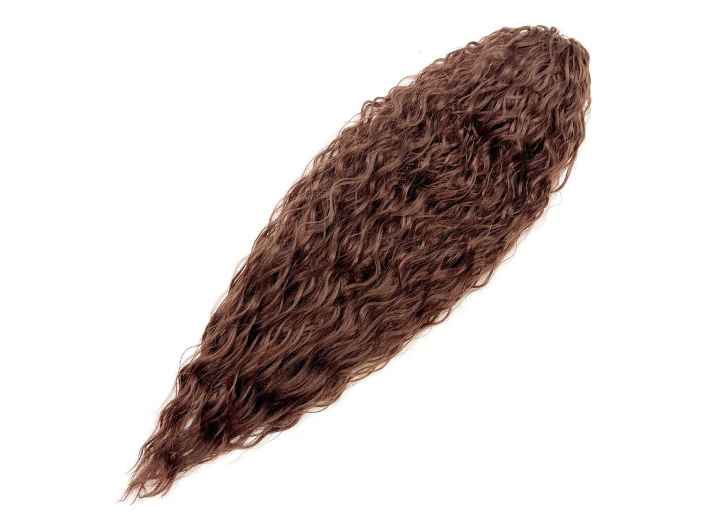 Wavy ponytail on a drawstring 70cm long. Approximate weight of ponytail is 200gr. Easy to put on by tightening the elastic band. The fibre can be heat treated up to 180-200C.