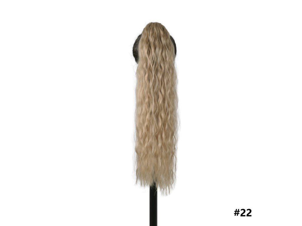 Clip-on ponytail made of artificial hair 60cm long 120gr. Fastening with a clip and covering the joint with a velcro strand.