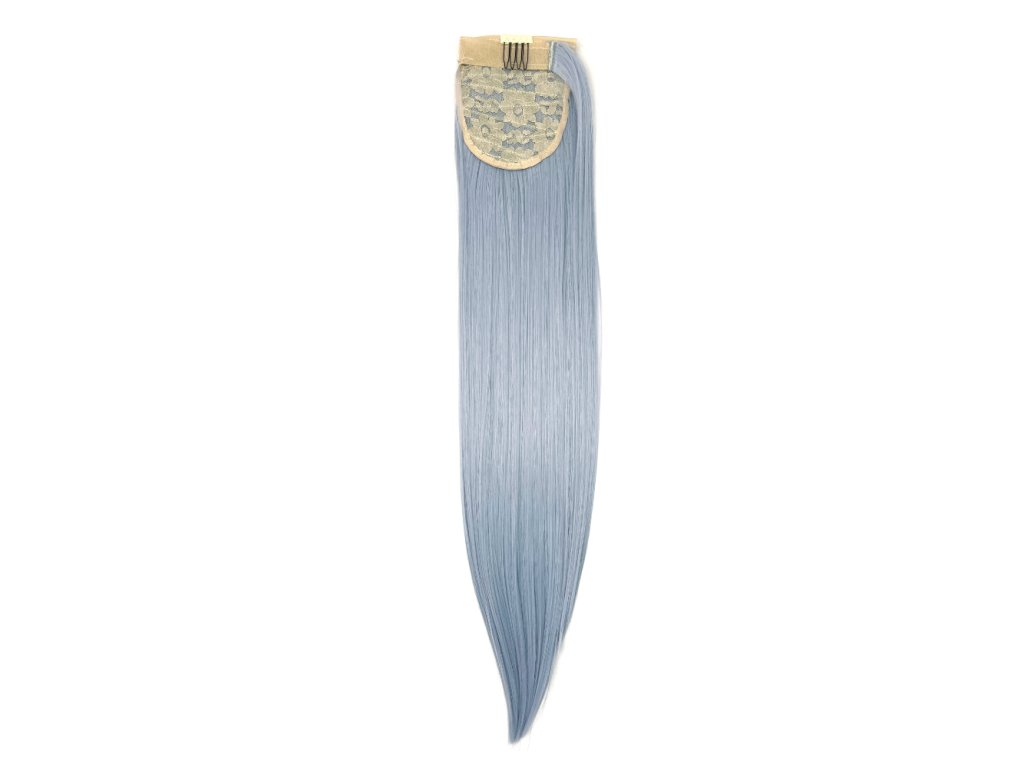 Clip-on ponytail made of artificial hair 60cm long 120gr. Fastening with a clip and covering the joint with a velcro strand.