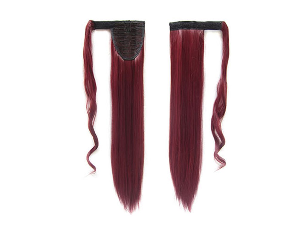 Clip-on ponytail made of artificial hair 60cm long 120gr. Fastening with a clip and covering the joint with a velcro strand.