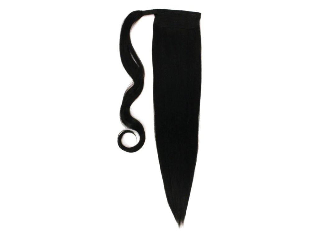 Clip-in ponytail is made out of kanekalon. It is 60cm long and it weighs around 120gr. This hairpiece gets fixed with a clip and a loose strand of hair with a velcro that hides the fixing when styled. The fibre is flame-retardant and you can style it with heat up to 130C.