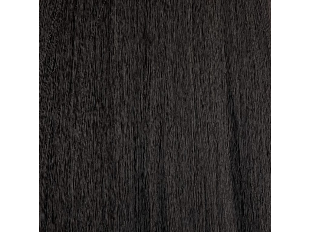 Clip-in ponytail is made out of kanekalon. It is 60cm long and it weighs around 120gr. This hairpiece gets fixed with a clip and a loose strand of hair with a velcro that hides the fixing when styled. The fibre is flame-retardant and you can style it with heat up to 130C.