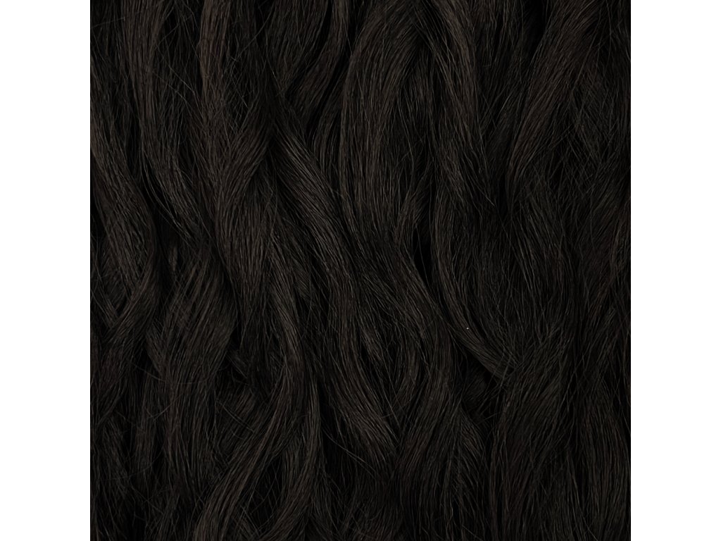 Clip-in ponytail is made out of kanekalon. It is 90cm long and it weighs around 120gr. This hairpiece gets fixed with a clip and a loose strand of hair with a velcro that hides the fixing when styled. The fibre is flame-retardant and you can style it with heat up to 130C.