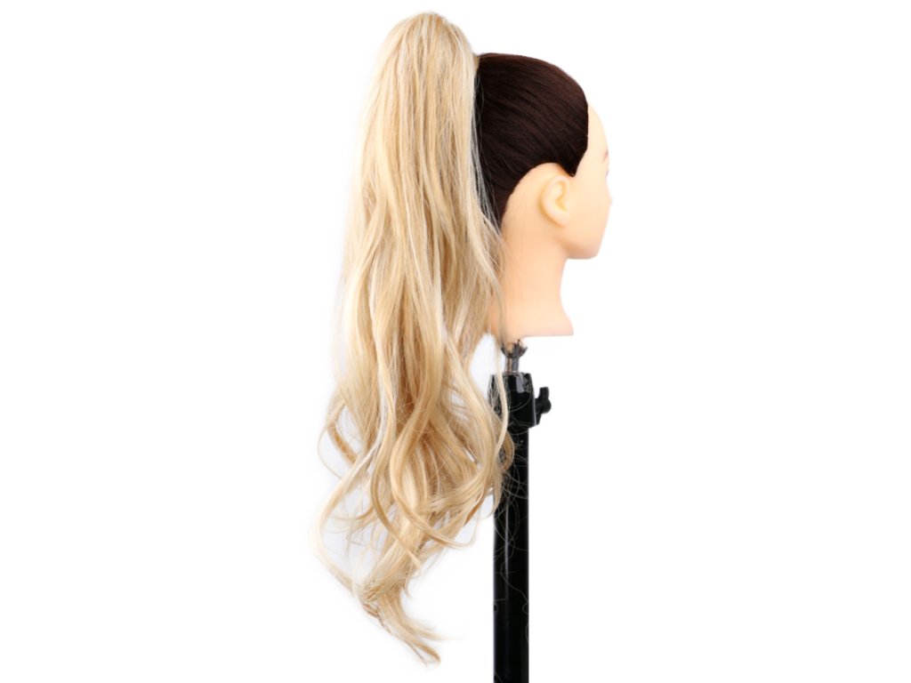 Setting ponytail with curled end and special setting tip. With this hairpiece you can quickly and easily extend your ponytail and achieve a natural look. Can be used for a high ponytail, a low ponytail or a voluminous bun.