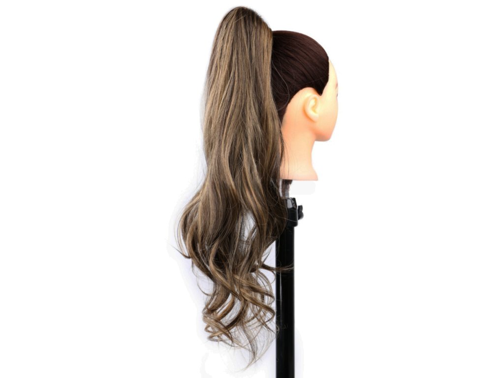 Setting ponytail with curled end and special setting tip. With this hairpiece you can quickly and easily extend your ponytail and achieve a natural look. Can be used for a high ponytail, a low ponytail or a voluminous bun.