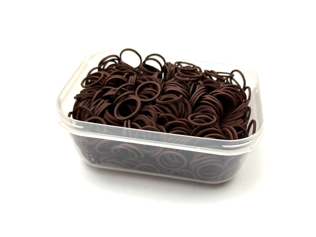 Rubber bands for pseudo dreadlocks, finishing braids or fixing when creating various hairstyles. One pack contains 1000 pieces of rubber bands. Colour dark brown.