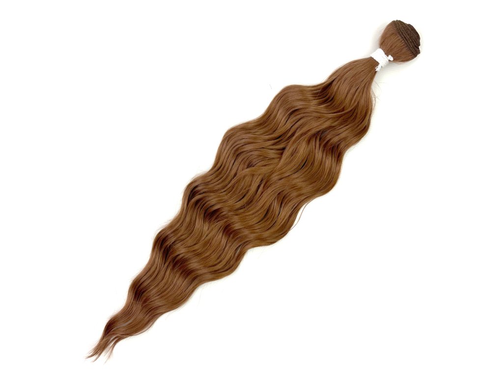 Wavy Anna Kanekalon on fringe for extending or thickening hair, creating hair extensions and extravagant hairstyles. Artificial hair does not shine and looks like real hair. The fibres are flame retardant and can be heat styled, curled and straightened repeatedly with a curling iron at a maximum temperature of 180C.