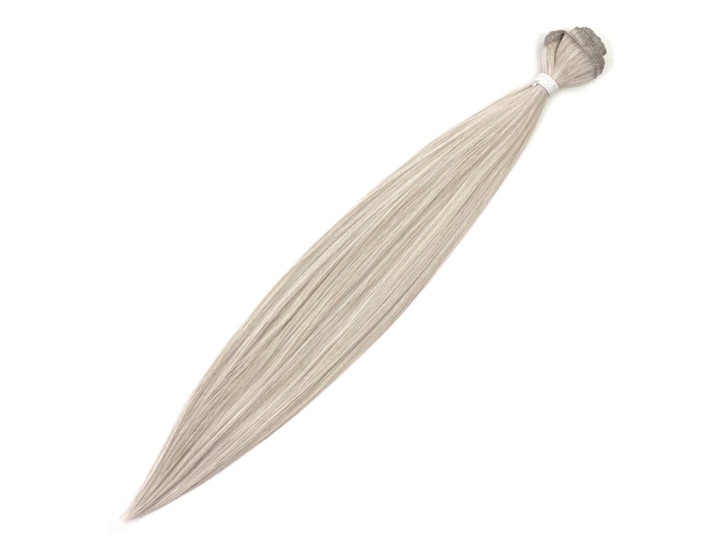 Straight fake hair on a fringe for creating hairpieces and extravagant hairstyles. Fake hair does not shine and looks like real hair. The fibres are flame retardant and can be heat styled, curled and straightened repeatedly with a curling iron at a maximum temperature of 180C.